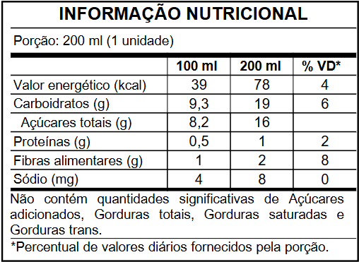 Ingredientes: Suco de maçã clarificado reconstituído e suco de morango reconstituído. NÃO CONTÉM GLÚTEN.