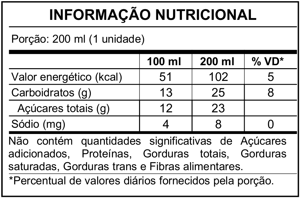 Ingredientes: Suco de uva reconstituído e suco de maçã clarificado reconstituído. NÃO CONTÉM GLÚTEN.
